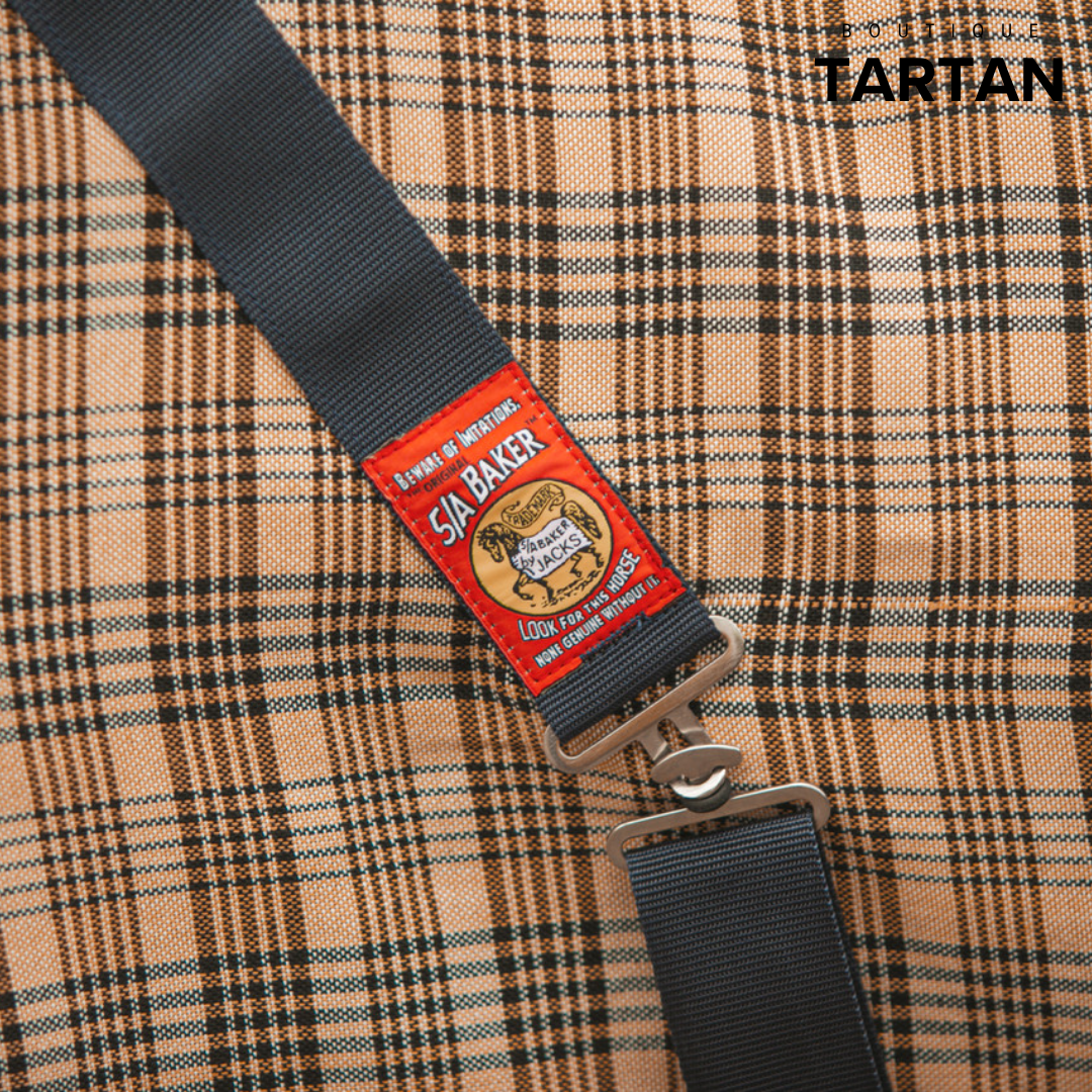 Confectionnée dans un tissu acrylique tissé simple épaisseur plus léger, elle est dotée de deux fermetures à l’avant, d’une coupe profilée à l’arrière-main, de sursangles bleu marine avec quincaillerie en acier inoxydable, ainsi que d’un biais de finition de 2 pouces aux rayures emblématiques 5/A Baker®.